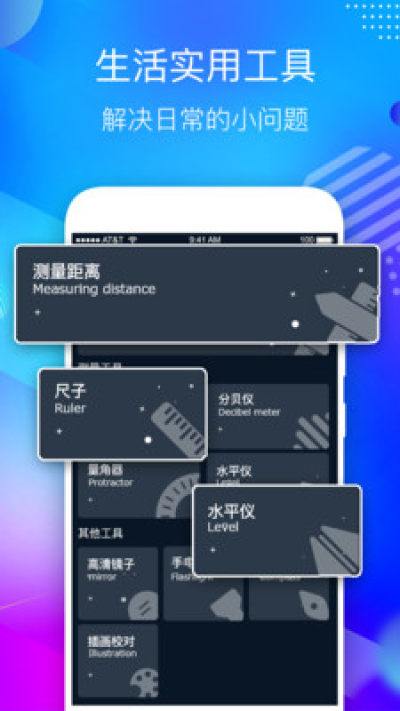 - 还有尺子,镜子,水平仪,手电筒,指南针等小功能等你来体验哦!