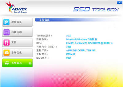 ADATA SSD Toolbox是威刚官方推出的一款为旗下固态硬盘管理工具,和其它固态硬盘工具一样,可以检测硬盘信息、系统信息,快速诊断硬盘,TRIM功能优化、安全擦除以及更新固件。