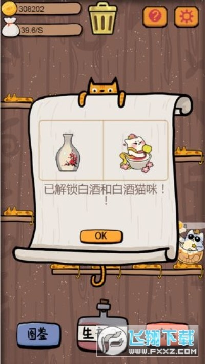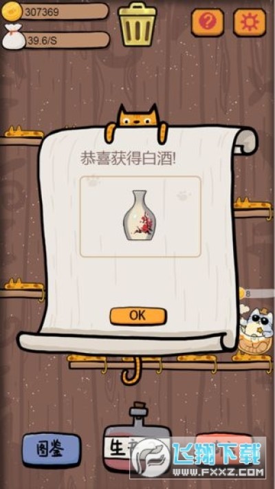 《干杯!我的私人猫酿》是一款休闲的放置类合成游戏,点击酒瓶出现猫咪,相同的猫猫可以合成更高级的猫猫,收益也会更高!在退出游戏后也会产生收益哦!不断去解锁更多酒和猫咪,偶尔还会有礼盒降临哦!