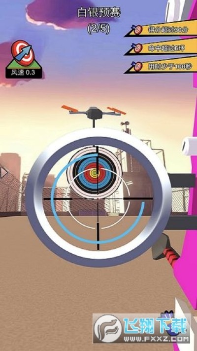 游戏是根据真实的体育射箭数值来制作的哦,为的就是让玩家体验到身临其境的感觉。所以要注意的是风向会影响箭的走向,遇强风时,记得调整箭的方向!