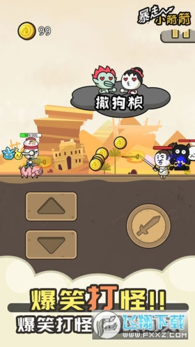 《暴走小箭箭》是一款充满魔性的跑酷射击游戏。全程操作只有点点点。主角儿童三轮车不骑,只骑猪;绿帽不戴,只戴马桶盖;打架就扔咸鱼牌棒棒糖。好不容易告别单身,迎娶路上穿越去了特没谱全球摔锅、女装大佬出没、扶不起老爷爷的250世界,全身开挂的你能否帮他一路打回现实世界来?