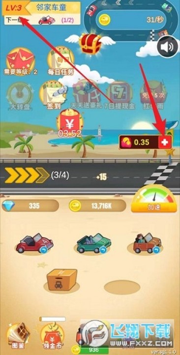 3、这里包含了更多的车辆,让您尽情的选择,同时还要升级跑道和买更多的车。