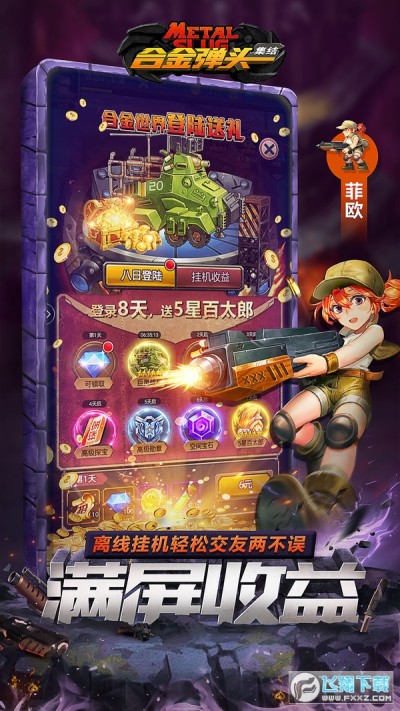 《合金弹头:集结》是一款获得SNK正版授权,由上海塔人开发的H5端放置类游戏,游戏以经典IP《合金弹头》的内容为依托,一方面复刻了原作的boss战,让玩家能体验到挑战boss的刺激;另一方面结合了放置类游戏的玩法,让玩家能够搜集养成原作中多种多样的兵种、坦克和怪物