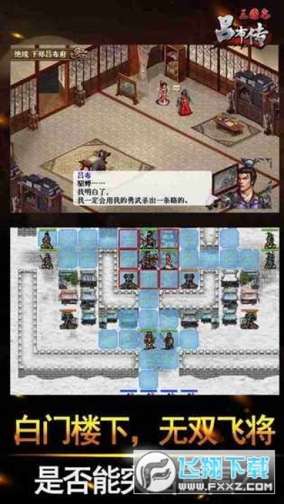 《三国志吕布传》是一款以三国历史人物吕布为主角而展开的角色扮演战棋游戏,游戏虚构了吕布在三国乱世中挣扎的故事!让玩家通过战斗自行选择吕布不同的结局,复兴汉室。在游戏中,你将扮演‘三国第一猛将’吕布,手持方天画戟,跨骑赤兔马,拥美人以战天下,演义「飞将出世、争夺兖州、徐州风云、虎步江淮」等耳熟能详的乱世风云!