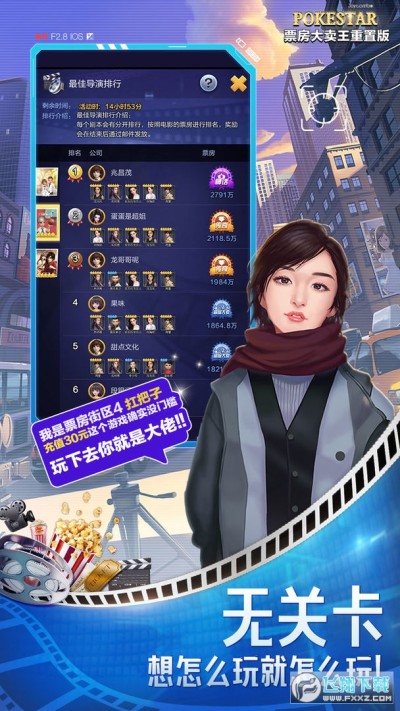 优秀新游推荐,独特模拟经营创新玩法,明星大亨玩转其中 化身名导,纵横影视圈,拍属于你的大卖电影 ! 这是一个逆袭的故事,可在游戏中收集数百位当红明星,全方位多角度培养,提高演艺技能,支持你最爱的明星。 海量剧本,任你挑选,搜罗千万神级剧本,拍摄大卖电影,横扫奥斯卡,占领全球市场,缔造属于自己的影业传奇!