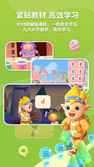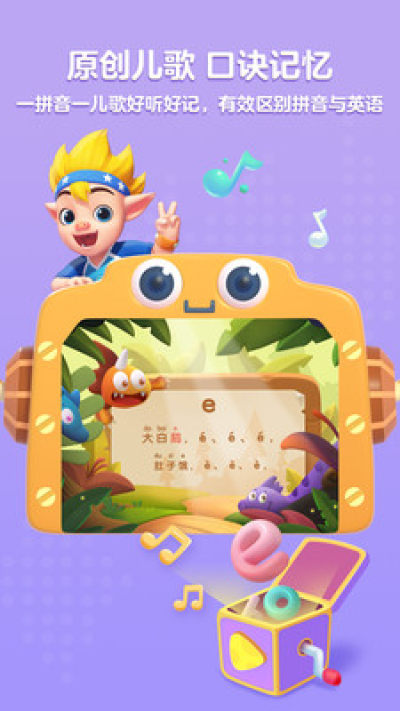 为每个拼音独家定制朗朗上口的原创儿歌,强化理解音形记忆,让孩子有效区分拼音与英文字母。