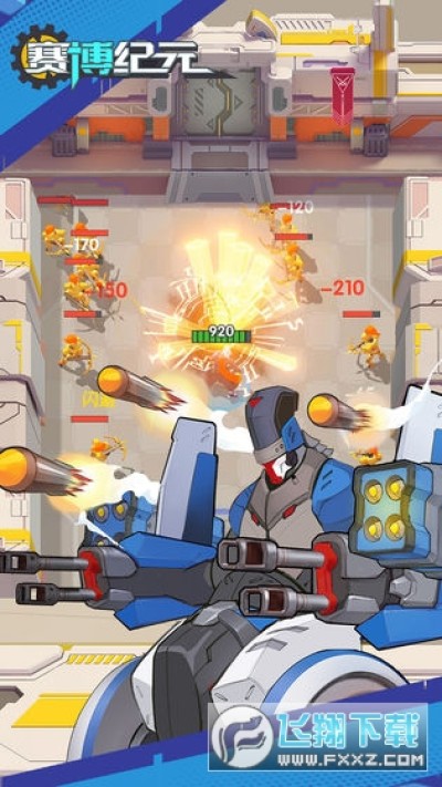 1、玩家将从拥有不同能力的强大机甲中选择一架进行战斗,在面积不大的竖版地图中与源源不断的敌人进行交火