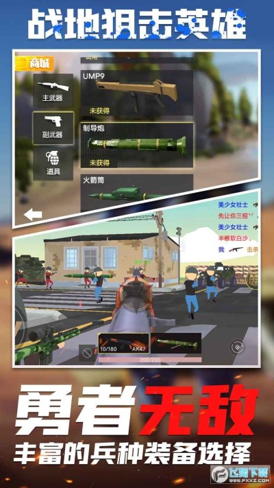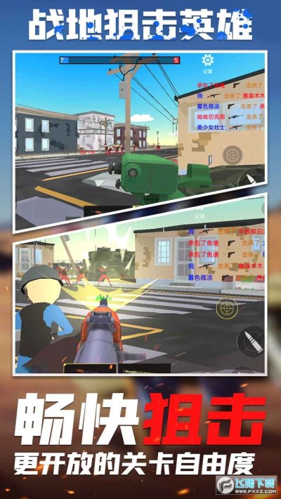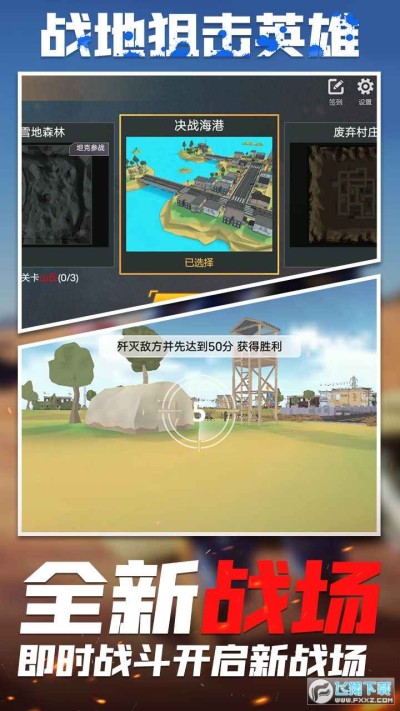 《战地狙击英雄》是一款战场模拟演习游戏。游戏主要是以占领据点,击败对手来获得胜利。在游戏中玩家需要扮演主角与敌人战斗,击败敌人后获得分数,在规定时间内击杀数多的一方胜利,游戏中包含多个地图。您将拥有不同的武器,坦克、等军事装备。游戏中第一人称视角的游戏模式代入感极强,同时类似像素方块的画面风格又消除了战场的暴力元素,让游戏变得幽默可爱!是一款非常适合放松心情的战争游戏。高自由度的地图,带给玩家完全的战斗体验!