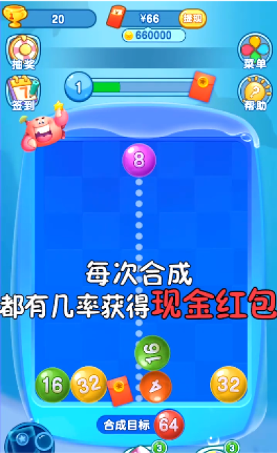 2048泡泡消红包版真的很给力,游戏中大量的关卡以及多种不同的模式,将会无限制的为大家开放。在2048泡泡消红包版游戏中,炫酷的画面特效以及简单的游戏操作为大家带来更多的乐趣。在这里玩家们每次顺利的通过关卡都可以得到诱人的红包奖励。