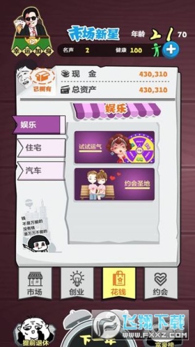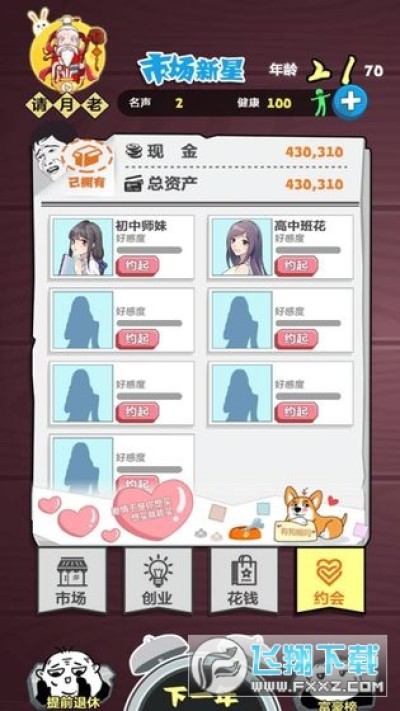 游戏系统采用回合制进行,并根据现实的特色设置了市场模块(用于买卖商品)、创业模块(创立公司),消费模块(提供了购房,购车等),约会模块(多位美女坐等你的邂逅,好感度达到99还有意外惊喜)。我要赚大钱游戏充分还原了现实创业面貌,为用户提供良好的游戏体验。