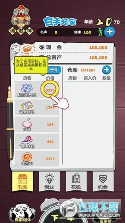 我要赚大钱游戏是一款现代商业题材的策略游戏。玩家需要在游戏扮演一位白手起家的主人公,在游戏的过程中,需要创立公司、发展经济,买卖商品,协调资源,根据发展的需要合理的分配资产,通过不懈的努力最终成为首富。