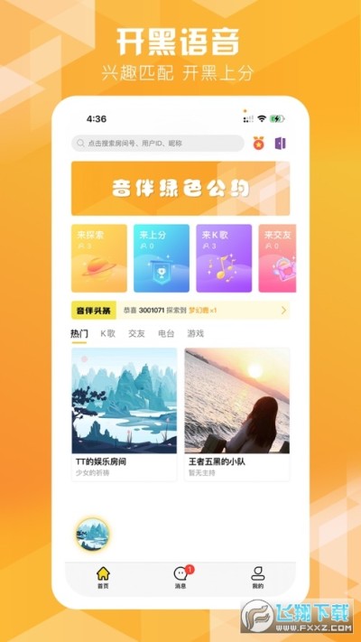 音伴星球app是一款手机社交平台,这款软件以音乐为纽带,提供语音模式下的聊天,开黑,视频社交功能等等,在音伴星球app上用户可以在线拉人找人一起玩游戏,支持唱歌、多人聊天模式,感兴趣的可以来试试!