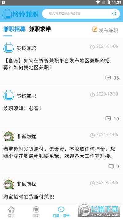 铃铃兼职平台是一个集线上、线下于一体的灵活用工平台,拥有兼职交流社区;在这里,你可以用手机兼职,不管你是学生党还是上班族小白领,想招人还是想求带,是用苹果、安卓手机还是电脑,都可以在这里找到合适你的那一份兼职,欢迎加入!