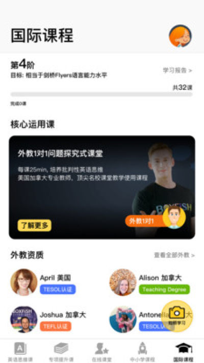 BOXFiSH根据出国考试和美国、英国的课堂教学要求,总结出了相关的4大能力和对应的3513个知识点,并根据中国学生的特点和学习难点研发出了全新的国际课程体系。部分课程也被广泛应用在名校的培优课堂上。