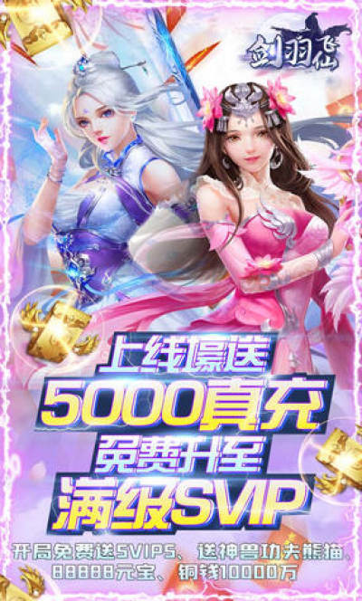 剑羽飞仙送5000真充是一款超高人气的仙侠手游,上线就送5000元充值,免费升级为满级SVIP,多种职业角色选择,每个角色都有着炫酷华丽的技能特效,自由PK,自由交易,支持组队开黑!喜欢就速速来下载吧!