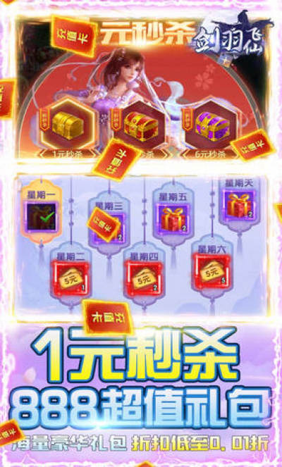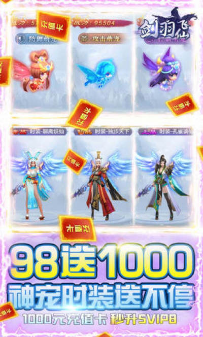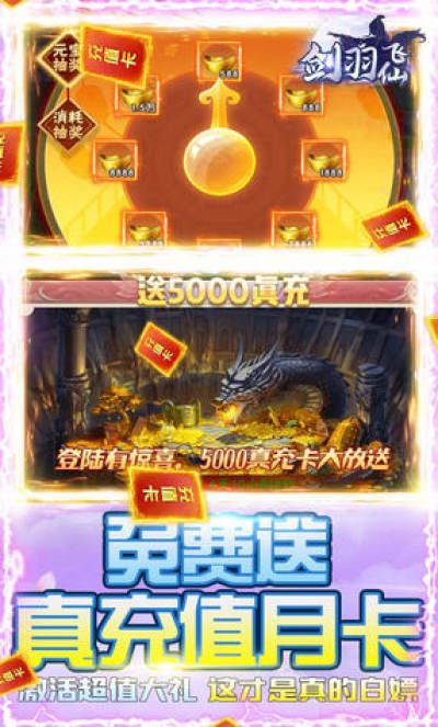 剑羽飞仙(送5000真充)上线壕送5000真充,免费升级满级SVIP,极品神兽,坐骑,时装统统免费送! 无敌资源100倍元宝,1000倍铜钱爆仓嗨翻天!充98送1000,直升SVIP8,帝品神宠、仙皇神翼任意领! 开局免费送SVIP5,元宝*88888,铜钱*10000万、绝版灵宠-功夫熊,签到还有海量真充值卡无限领! 全地图自由飞行,跨越千山万水,千人同屏,暴燃仙界大战,华丽百变时装,伙伴灵宠等百变玩法,畅游最精彩的仙侠世界。