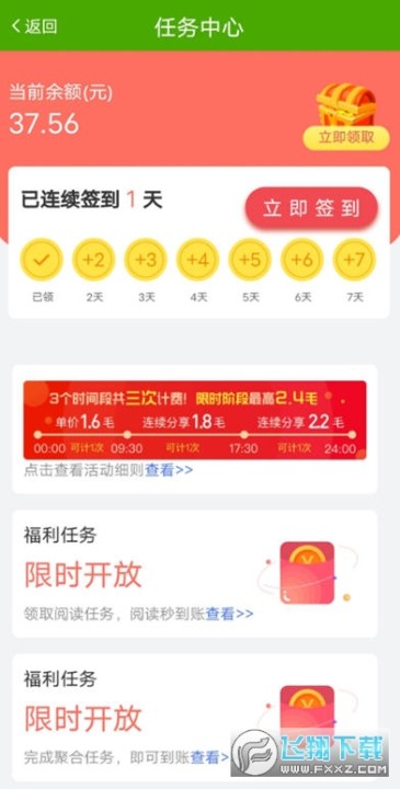 1、自阅新闻得收益,转发单价至少0.35元,活动多,奖金多,签到也能领取现金。