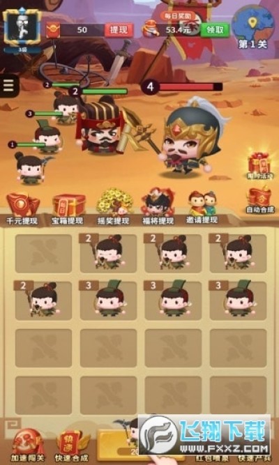 3.合成英雄,养成武将,红包奖励非常多,欢乐体验更轻松。