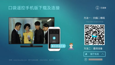 3、请保证手机和电视都运用最新版哦!假如有提示装置口袋遥控小帮手,请点击装置,以保证遥控操作更流通。