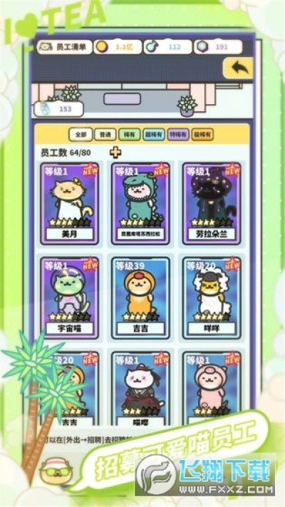 你需要雇佣可爱的猫咪为你工作,加快制作进度。为了不断研究新的奶茶配方,提高店的人气值和吸引力,还需要升级原料,升级猫咪。还可以装修店面,解锁周边装饰才能更广地吸引客源。