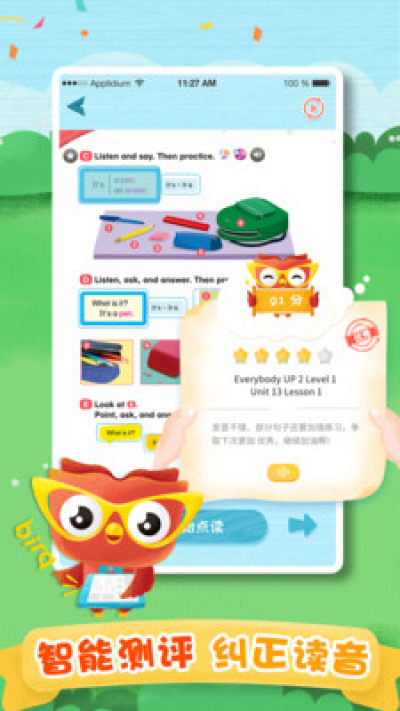 丰富的课本、绘本和特色课程等英文资源。智能化同步学生学习进度,集点读、跟读、评分于一体,手机变掌上学习机,孩子说得出,家长看得到!