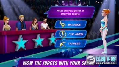 恭喜你,女孩!我们邀请你参加最热门的电视才艺秀——《杂技明星秀》!展现你惊人的杂技动作,给评委留下深刻印象!表演前所未有的扭转、西尔转轮和空中飞人动作!用你的一套独特动作博得观众的喝彩。在后台化妆间换上全新的妆容和发型!