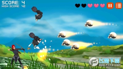 一个2D射箭游戏,简单的界面,只需点击屏幕,使弓箭手拉弓和射箭。你的玩家是恐怖幻想世界中的射手女猎人,配有弓箭和无限数量的箭。用弓箭击落僵尸,木乃伊,亡灵,吸血蝙蝠,失控的忍者和其他恶魔的生物。