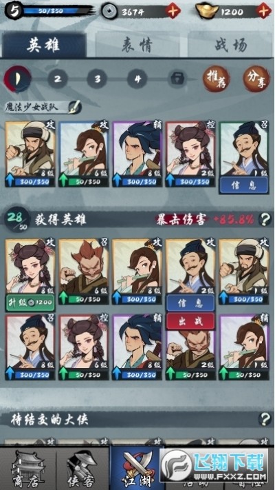 武功来了手游是一款最新的古风武侠动作手游,游戏竖版放置玩法为主,玩家可以收集海量的古风英雄角色,海量的难度关卡副本等你挑战,不断升级排兵布阵!对游戏感兴趣的话不妨点击下载尝试吧!