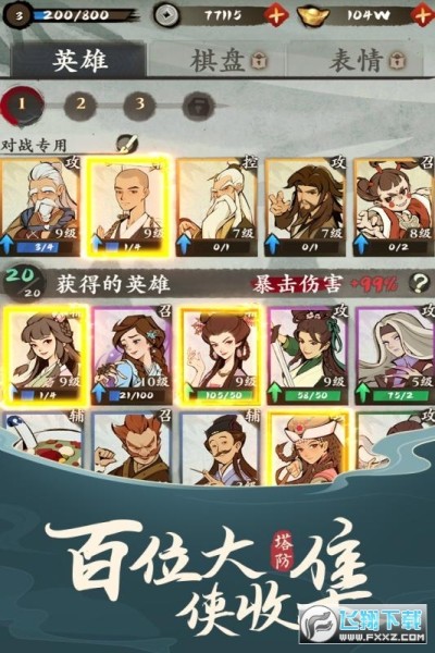 《武功来了》是一款武侠题材的竞技塔防手游,玩家通过按照自己的喜好收集和升级各种武侠角色,发挥不同英雄的属性技能,去打败敌人,有趣的玩法同时考验你的脑力和运气。