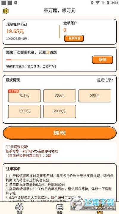4.0.3元提现是新人专享福利,每个账号可享受一次