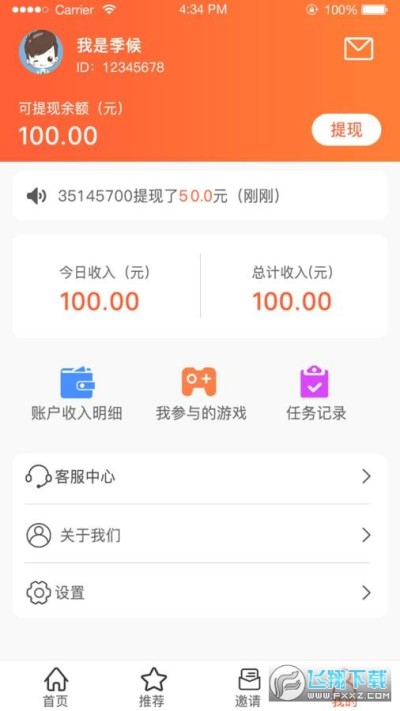 邀请好友:邀请好友一起赚钱,邀请就有礼;