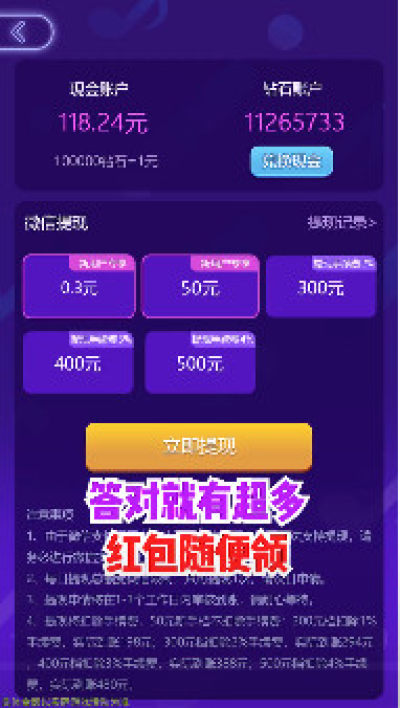 4、猜歌就能赚钱,每天都有零花钱,0.3元就能提现!