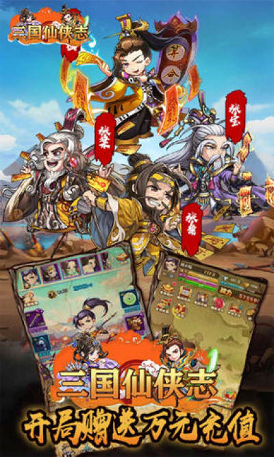 三国仙侠志送万元充值是一款三国题材卡牌玩法手游,游戏采用了Q萌的人物造型和画风设计,丰富的三国武将等你来收集,可以自由养成武将提升属性,合理搭配阵容来战斗!喜欢就赶紧来下载吧!