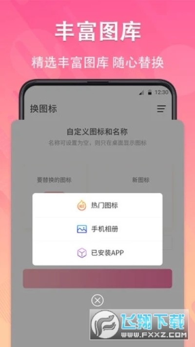 3. 点击“选择新图标”从图标包,手机相册,自定义文字,已安装应用,第三方个性化图标包或近期使用图标库中选择新图像。