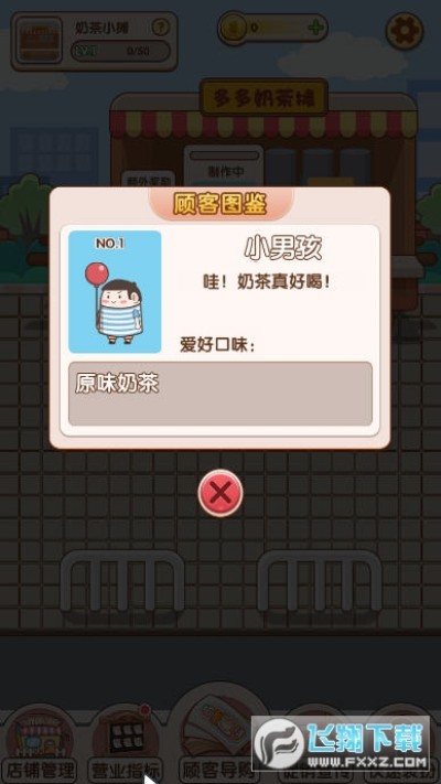 1.在游戏中为不同的客户制作不同口味的奶茶,不断获取利润,扩大规模。