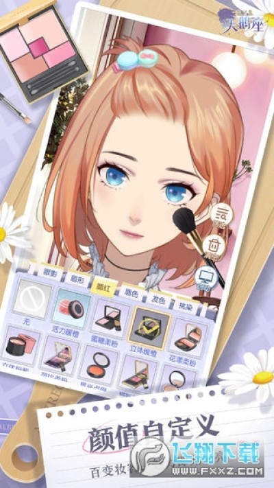 2、自由美妆玩法,实现每个女孩子的美丽心愿。上百种妆饰单品任意配搭,打造自信闪亮妆容!