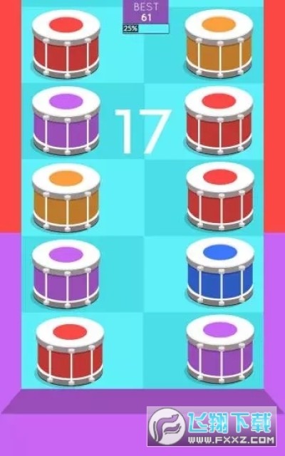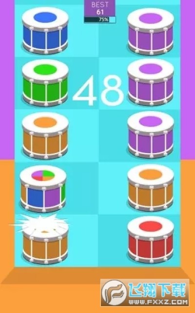 背景色是不断变化的,在游戏中,你必须在鼓下降的过程中敲击相同颜色的鼓。如果任何瓷砖使它到屏幕的底部,游戏结束了,你必须重新启动…这是一个令人眼花缭乱的游戏体验,一定能测试你的反应和集中度!