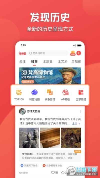 全世界app是原来的全历史app,在这里各位用户可以了解国内外各个地方的历史,在全世界app上有关于历史知识的解读,包括关系图谱,详细介绍,还能通过AR技术重现真实的历史事件!