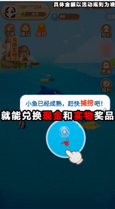 快乐鱼塘红包版游戏的人气非常高,卡通的风格,清新简约的画面。