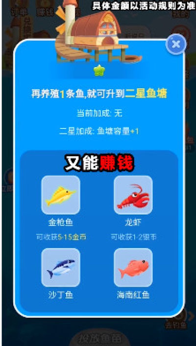 不同的鱼卖的钱不同,用户可以养很多种不同种类的鱼。