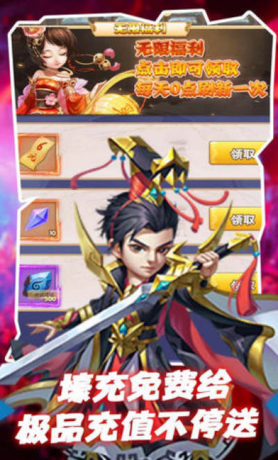 小兵三国无限换充值是一款三国题材卡牌养成玩法手游,玩家上线就送VIP20和无限充值卡,丰富的三国英雄任你收集和培养,合理搭配阵容来战斗!感兴趣的玩家不妨来下载体验吧!