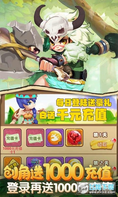 创角送千充-福利介绍:创角角色,开启登录活动后,可直接获得1000元充值卡(登录奖励界面)
