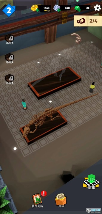 当你将部分骨骼挖掘清理后,便可将其收藏于博物馆中,供游客欣赏,并赚取小钱钱。