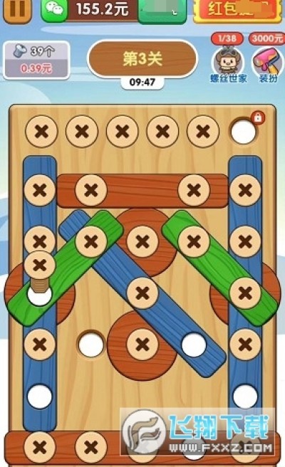 玩个螺丝红包版,一款内含超多红包福利的解螺丝小游戏,这里有很多关卡可以挑战,玩家将在这里面临各种类型的木条与螺丝的组合,你需要精准的推算出螺丝钉的拆解顺序,将木板上的所有螺丝钉全部拆除,成为拆除螺丝钉的高手。