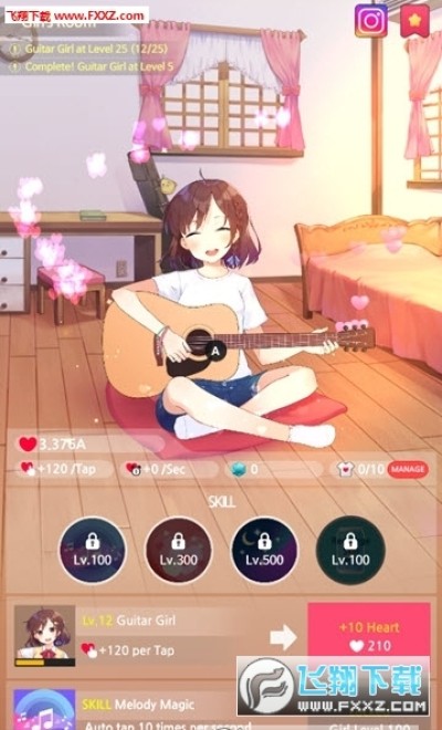 吉他少女是一款动漫卡通风格的治愈模拟养成游戏,我们将扮演一名弹吉他的少女,不断的培养自己的技能获得更多的粉丝。