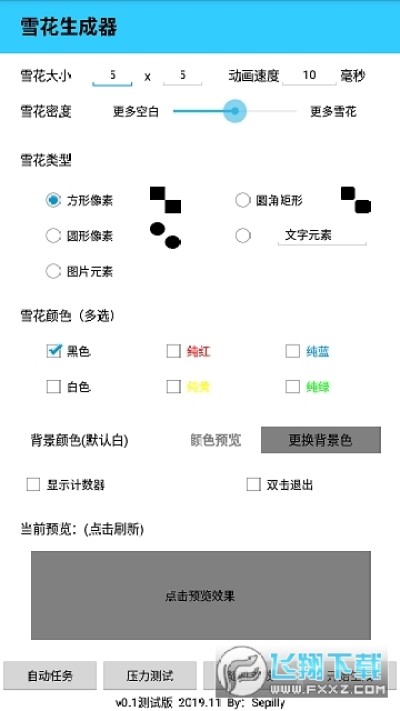 1、用户可以设置虚化大小。动画速度、雪花密度、雪花颜色等;