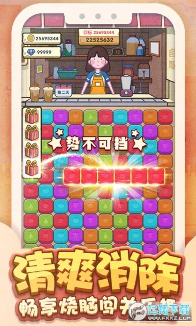 4、消除水果制作奶茶!游戏没有时间限制,但是每一关都有目标分数