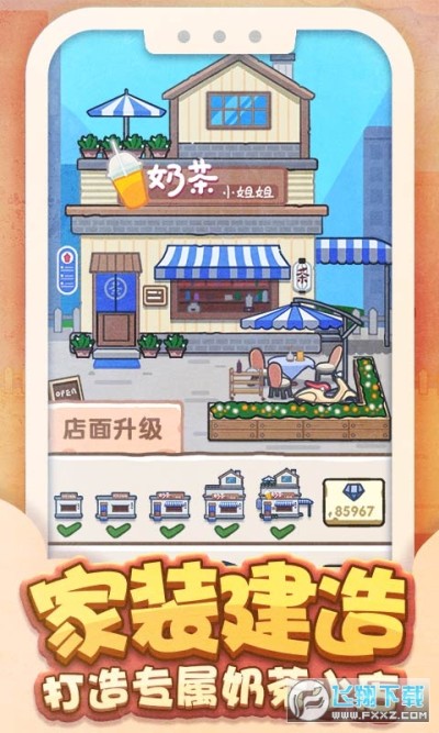 1、在这里可以建立温馨的奶茶店,经营状态,不断完善门店设备升级;