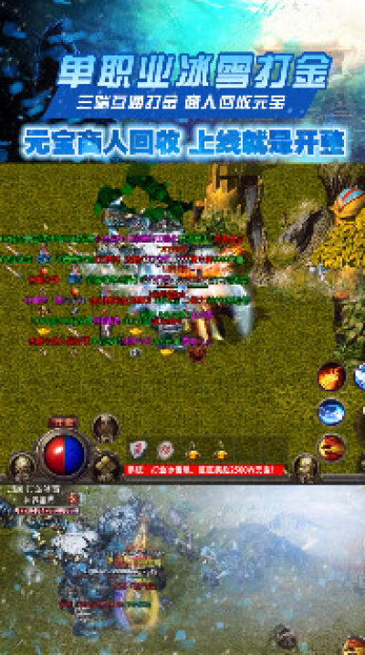 《单职业冰雪高爆版》是一款以冰雪世界为背景的手机传奇类游戏。这款单职业传奇的游戏加入了自由交易的系统,以超高的爆率为特色,玩家在游戏中可以通过刀刀爆装的体验来获得更多极品装备,感兴趣的小伙伴们赶紧下载体验吧!