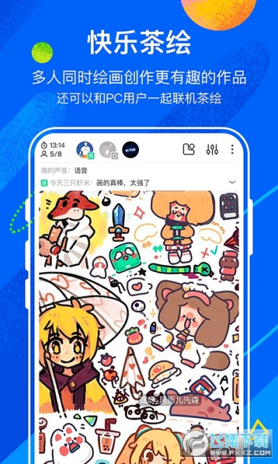 茶绘功能支持多人在线同时创作,边聊边画,快乐摸鱼。